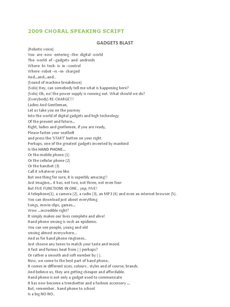 Choral Speaking Script For Kindergarten : Choral Speaking Script for 1d | Malaysia | Strait Of Malacca / Choral speaking script for kindergarten.